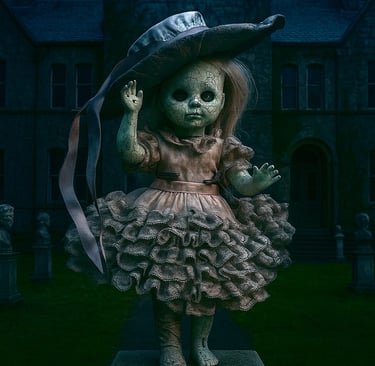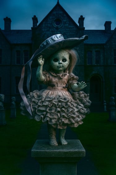 Over time, whispers spread through the asylum: the doll’s cracked features seemed to deepen with each passing year, as though absorbing its owner’s sorrow. When 'Lady' Whitcombe passed, Duchess remained on the asylum grounds, her hollow eyes unblinking, her silken dress singed faintly at the hem as though touched by the same fire that had claimed the family.