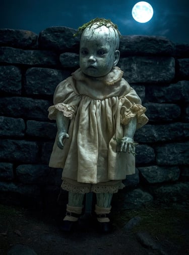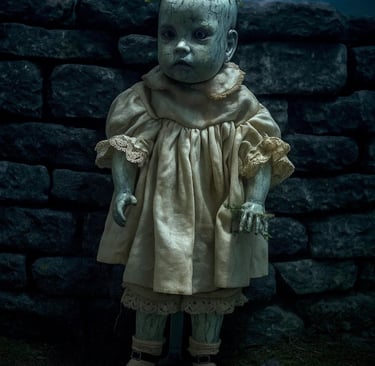Margaret began writing strange letters to the church - rambling messages about voices in the walls, about her husband not being truly gone, about the doll Iris being “the only one who listens.” In November of 1923, she vanished without a trace. The only clue left behind was the back door left ajar and a faint trail of waterlogged footprints leading toward the old well. Some say Margaret threw the doll down first to silence the whispers. Others believe the doll was what had been whispering all along.