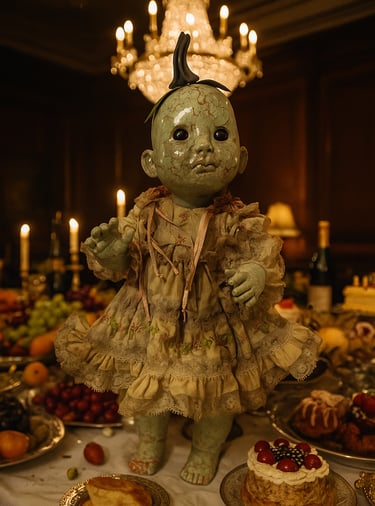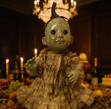 One moonless night, she walked out past the last fencepost and into the tangle of vines. She never came back. In the morning, dew lay heavy as tears, and in the middle of the field sat a doll no one had ever seen before - a cracked-faced figure clutching a single penny. They called her Miss Havisham, and some say if you stand in the patch at dawn, you can still hear the faint rustle of a dress in the vines.