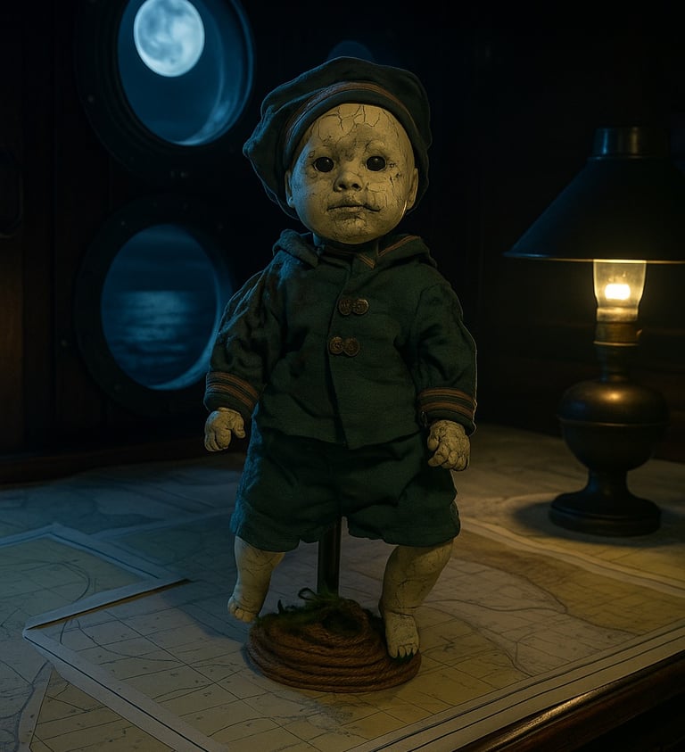 Only a child’s doll sat waiting in the captain’s chair. His face had cracked from salt and sun, and his dark eyes seemed fixed on the horizon. This was Pip, constant companion of young Nathaniel Winslow. His small sailor’s uniform bore faint stains where a boy’s hands once clung to him.