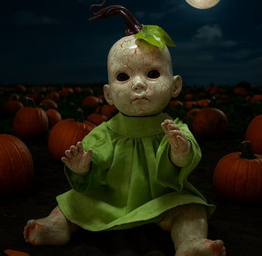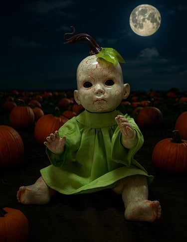 Some bore soft, rounded heads like miniature gourds-skin textured like aged pumpkin rind. Others had hollow eyes set deep in cracked faces, their limbs a mix of orange pulp and hardened vine. Each seemed different…but all shared one thing: a faint but undeniable humanness that no one could explain.